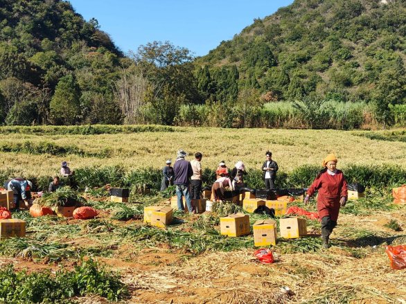 扩大服务覆盖,推动农业增效增收。截至目前,兴义市供销社的农业社会化服务已覆盖超过10,000亩土地,涉及生姜、韭菜、西红柿等本地特色作物,尤其生姜种植效果显著。在供销社的技术支持下,生姜的亩产量从4000—5000斤提高至15000斤,大幅提升了农业产值,降低了生产成本,提高了市场竞争力。通过标准化种植与科学管理,供销社帮助农民优化种植结构,提高了生姜品质与产量,增加了销售机会和农民收入。生姜种植的成功经验为其他作物提供了可复制的模式,推动了农业产业升级,助力农业现代化。