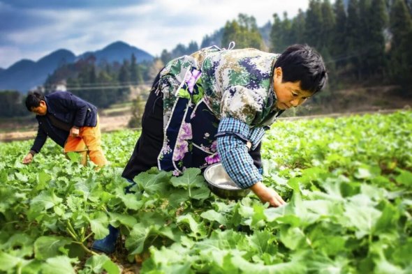 冬至时节,织金县连片油菜种植生机勃勃,长势喜人。田间地头,村民们正有序开展除草、施肥等管护作业,一派冬日农忙景象。