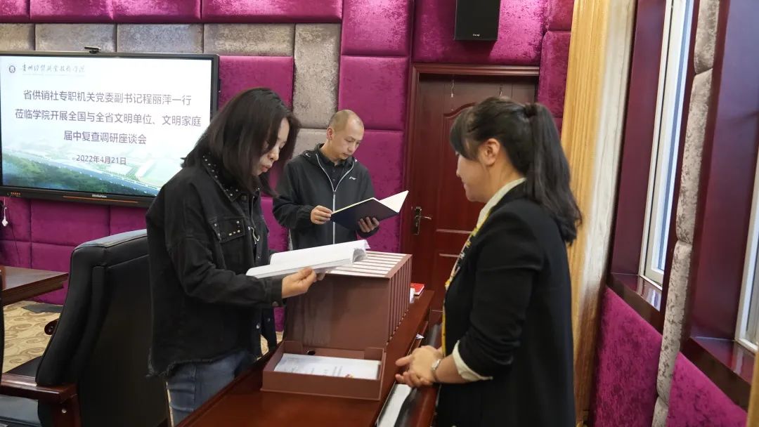 最后,程丽萍针对此次工作检查作讲话。在讲话中,她对学院党建工作取得的成绩和亮点表示肯定。她表示,希望学院党委继续加强“三六一”党建品牌建设,持续创新“五心思政”工作格局,不断强化党建引领,积极与省社机关党委交流沟通,省社机关党委也将一如既往地支持学院党委各项工作,双方继续团结努力,促进学院党建工作迈上新台阶,同时共同打好学院“供销牌”和“黔茶牌”,进一步凸显供销特色,助推学院高质量发展。